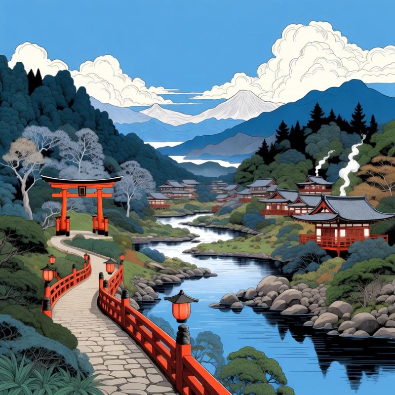 みんなでマジックインキ 新春の美しい日本の風景のイラストを描こう。 Grok