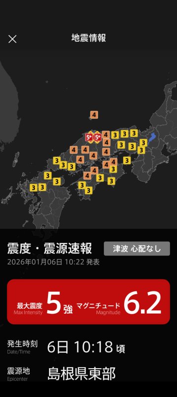 NERVアプリの緊急地震速報の通知が鳴った。