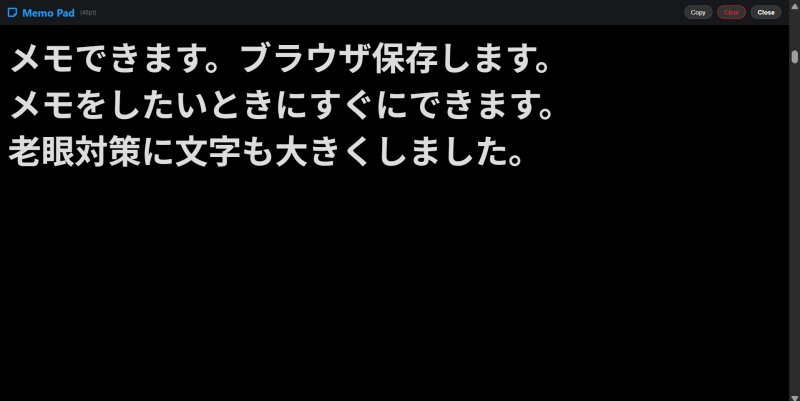 検索欄の横のアイコンをクリックすると簡易メモ帳に切り替わります。一時的なメモに使えます。