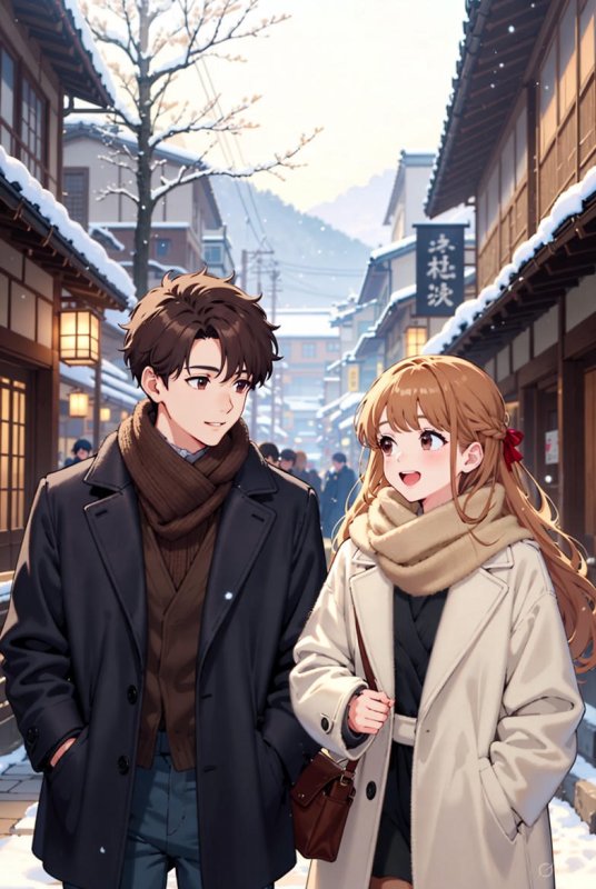 温泉街を歩くイメージ。