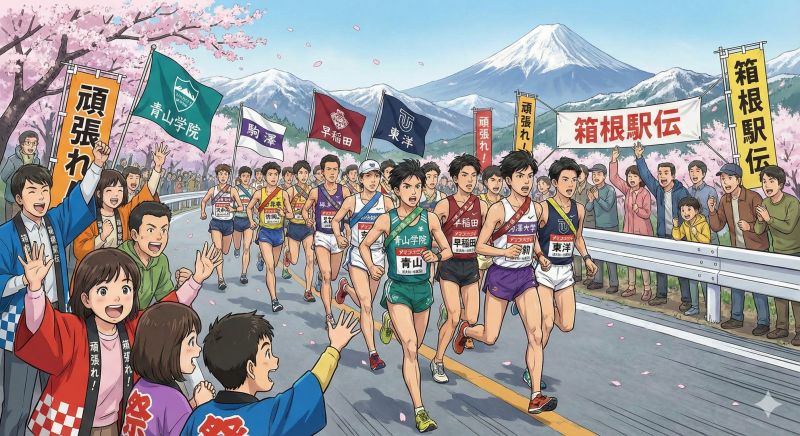 今年も出発した箱根駅伝。AI イラストで作ってみました。