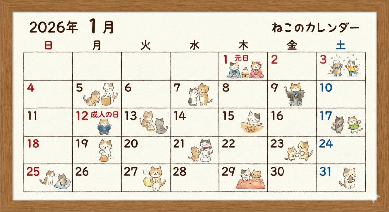 Geminiにて1月のカレンダーをひねり出してみた。